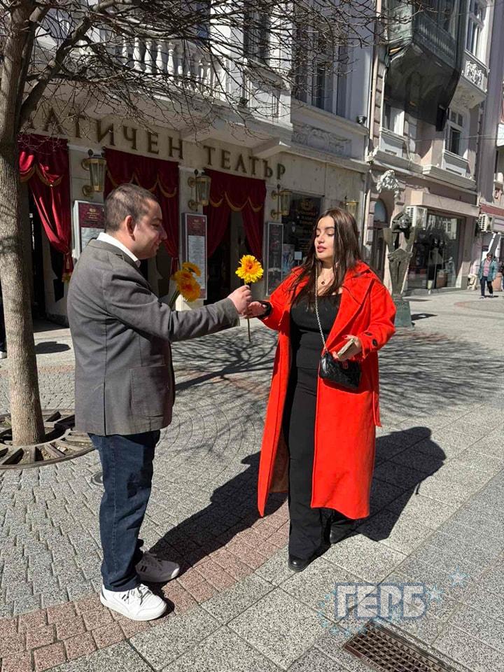 Младежи ГЕРБ в Пловдив зарадваха дамите с гербери по повод 8-ми март