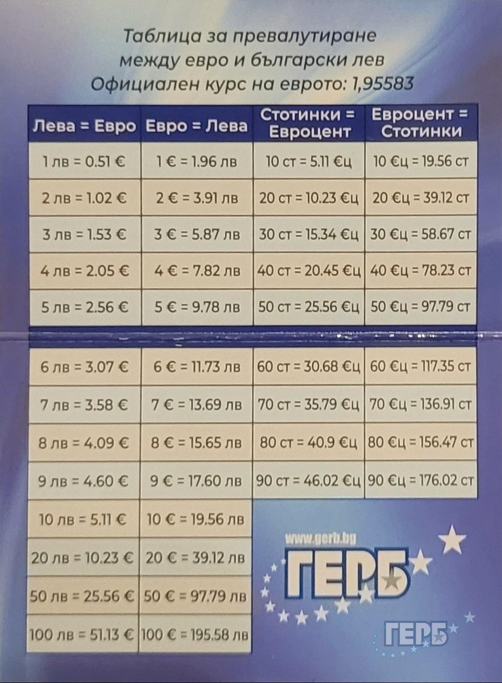 „Като практическа помощ за хората подготвихме джобна преизчислителна таблица, в която са посочени най-често срещаните цени от ежедневието и техните равностойности в евро. Така всеки ще може по-лесно да се ориентира в стойностите и да свикне с новата валута“, обясни районният ръководител Ангел Славов.