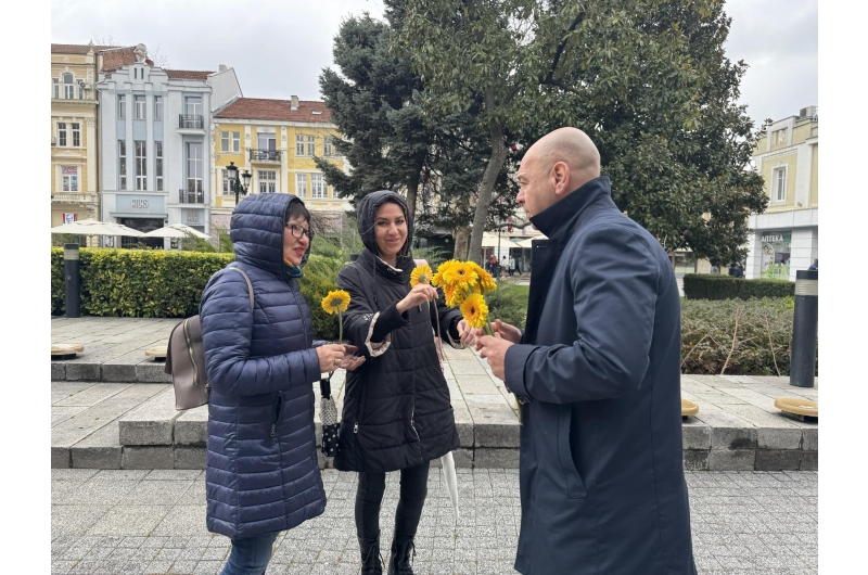 500 дами в центъра на Пловдив получиха цвете от ГЕРБ за Международния ден на жената 8-ми март с пожелания за здраве, щастие и вдъхновение.