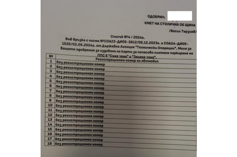 На същото основание през месец май тази година кметът на София Васил Терзиев е одобрил издаването на 18 карти без регистрационни номера.