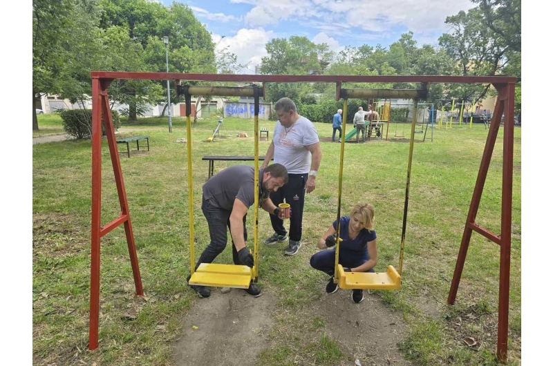 Структурата на ГЕРБ в район „Северен“ ремонтира детски игрушки и освежи пейките в малко парково пространство в квартал „Захарна фабрика“. В инициативата участваха Антон Георгиев и Станислава Лулчева от кандидатската листа, ръководителят Гошо Къчков, членове на организацията.