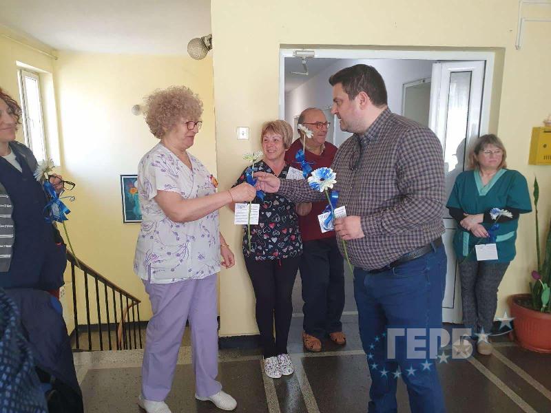 В навечерието на Международния ден на жената членове от структурата на ГЕРБ в пловдивския район „Западен“ посетиха днес акушеро-гинекологичното отделение на ул. „Весела“ към МБАЛ „Свети Мина“, за да поднесат на дамите, работещи в него, сърдечни пожелания и цвете за празника. Те изразиха и признателност към труда и всеотдайността на медицинските специалисти.