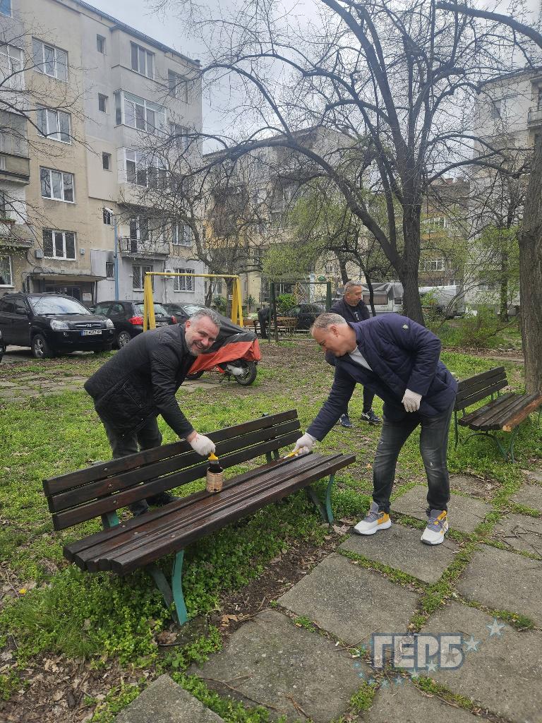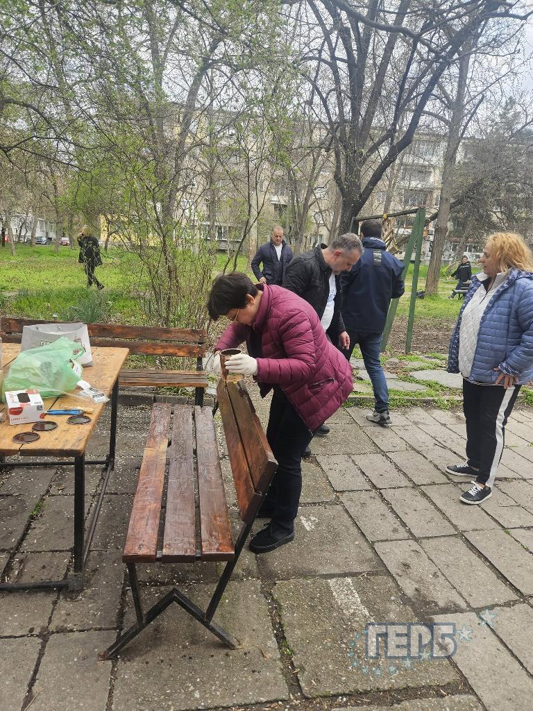 Структурата на ГЕРБ в пловдивския район „Южен“ с ръководител Георги Василев днес реализира поредна инициатива към подобряване на градската среда. В рамките на доброволческа акция членове на организацията боядисаха пейките в три междублокови пространства в района с цел създаване на по-приятна и приветлива среда за жителите.