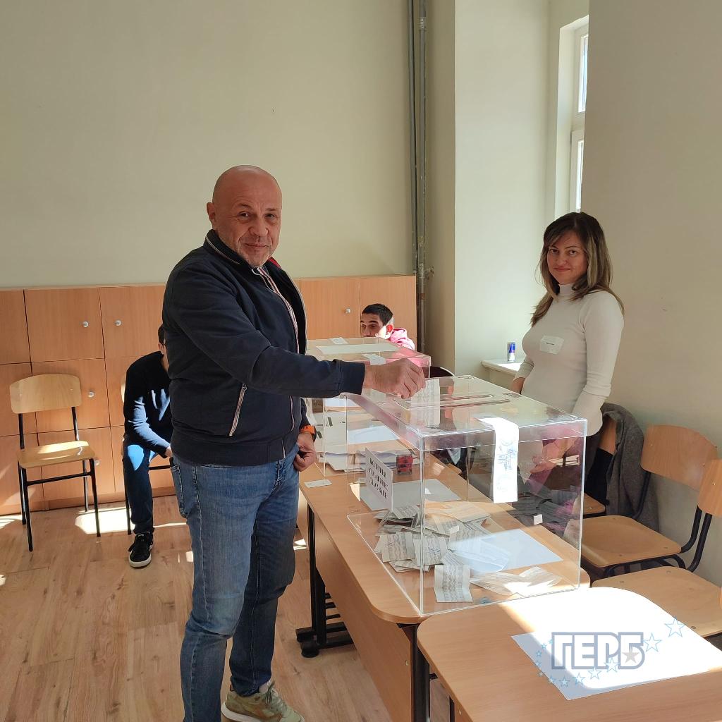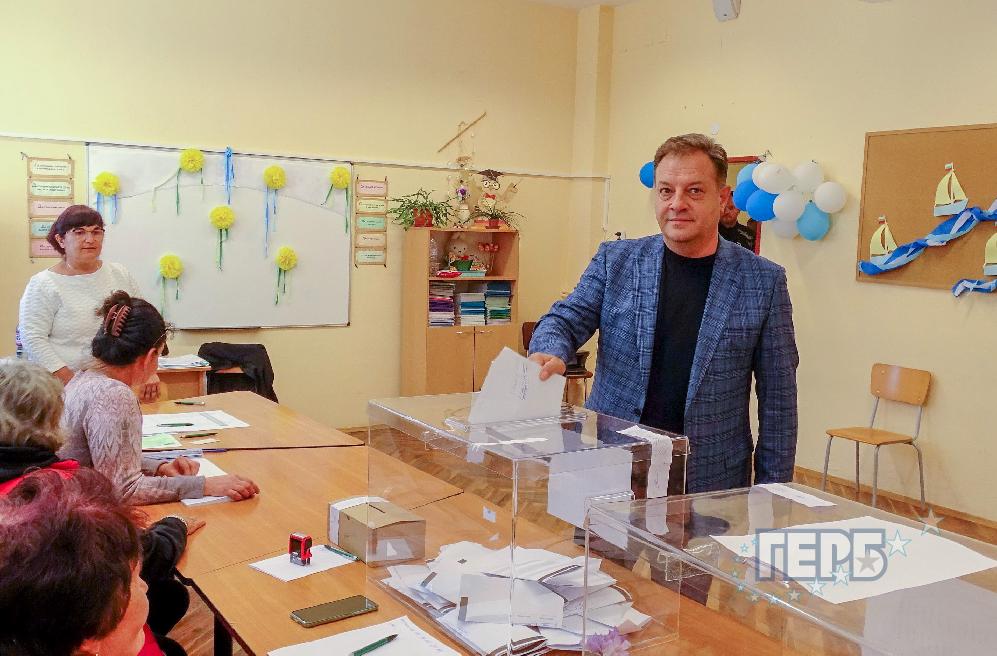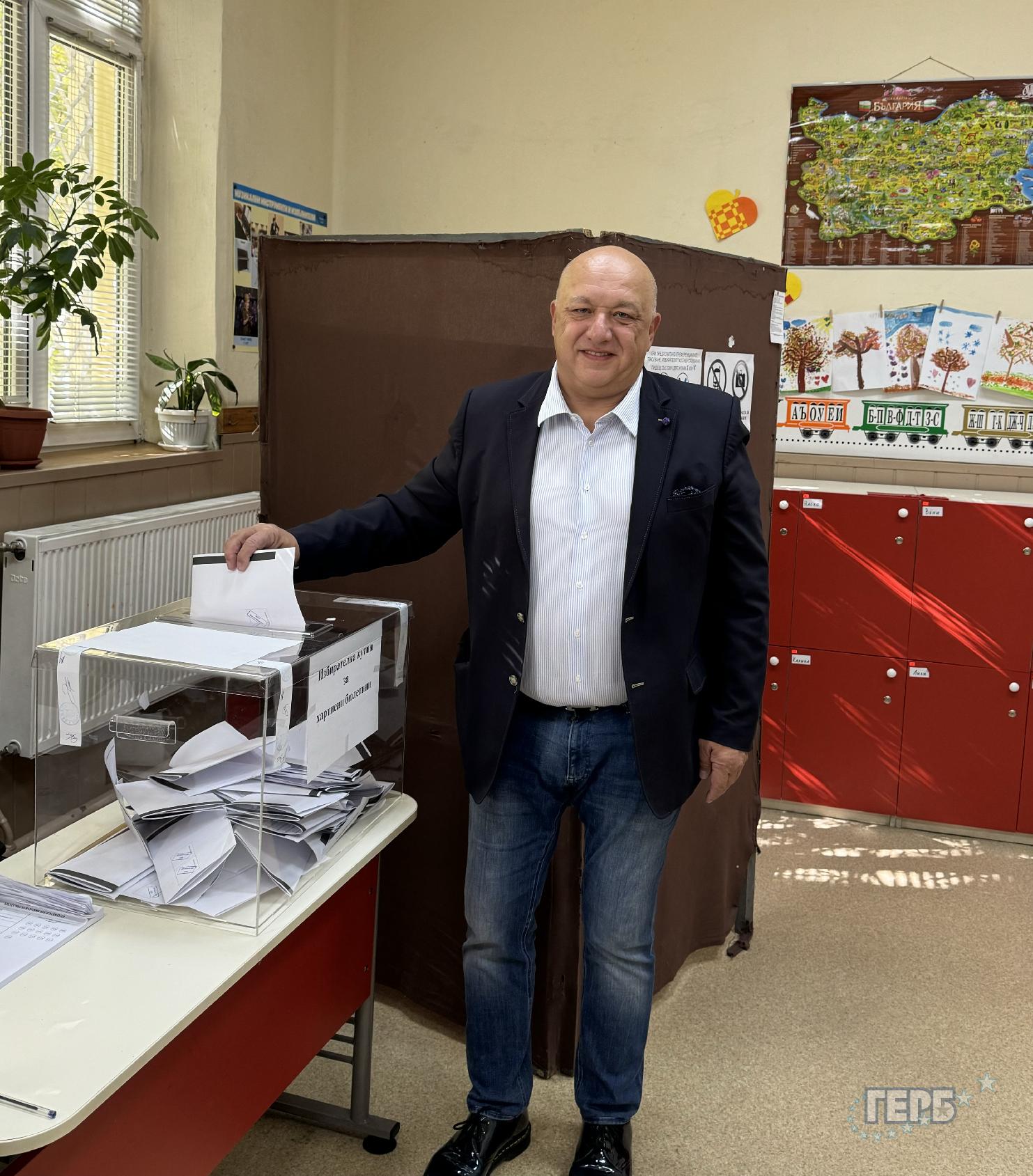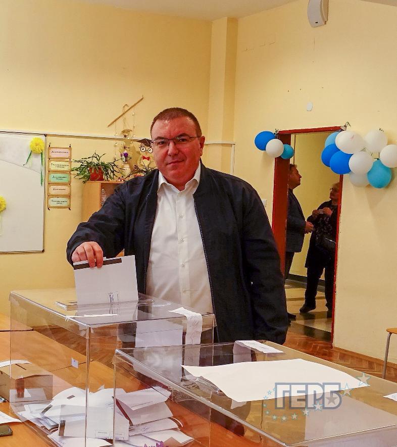 Водачът на листата на ГЕРБ-СДС за 13 МИР-Пазарджик Красен Кралев гласува в ОУ „Проф. Иван Батаклиев” в гр. ...