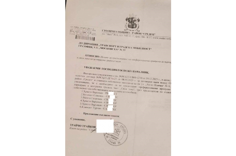 Издаването на карти за паркиране в синя и зелена зона без регистрационни номера се прави по искане на Държавна агенция „Технически операц ...