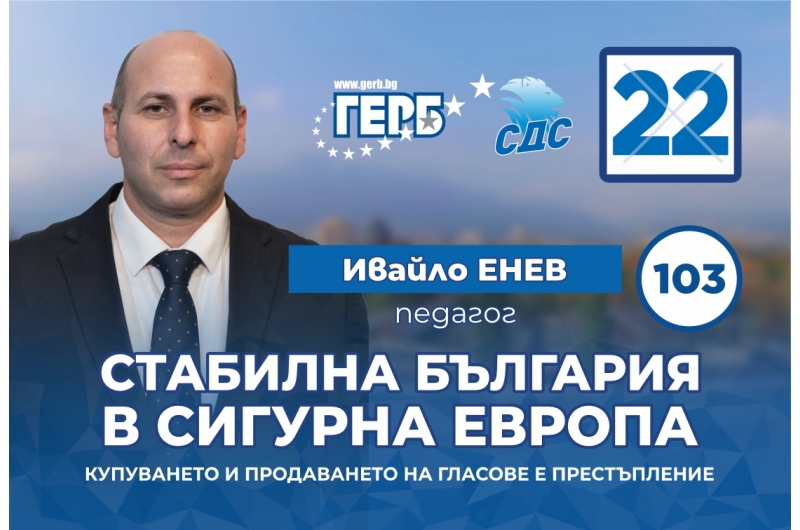 Ивайло Енев: Само ГЕРБ-СДС може да вдъхне доверие, спокойствие и стабилност на хората в България