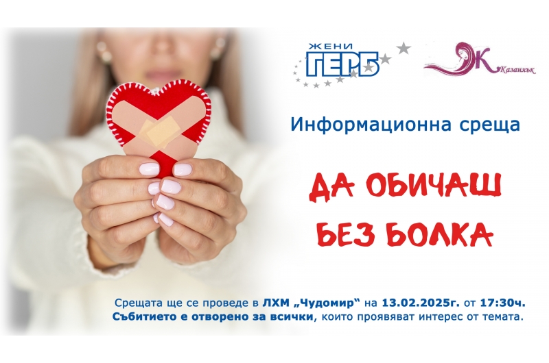 Жени ГЕРБ и Сдружение „Жените на Казанлък“ организират информационна среща под надслов „Да обичаш без болка“. Тя ще ...